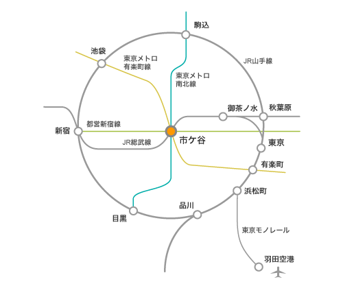東京メトロ南北線 市ヶ谷駅下車 2番出口 徒歩2分