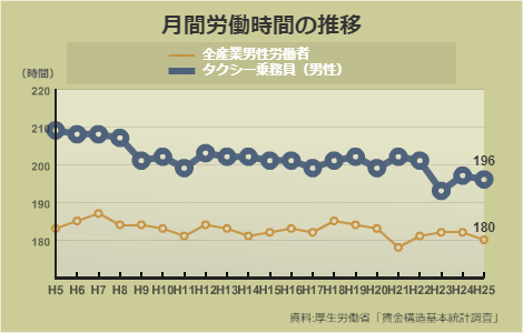 タクシーは利用者のニーズに応じるため、拘束時間が長く厳しい労働環境の下にあり、安全運転、過労防止のために労働時間等が細かく規制されています。このため適正な労働時間管理により時短を図る等勤務条件の改善に努力しています。